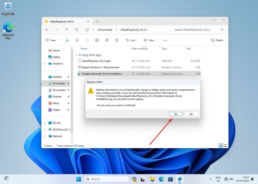 - Apri la cartella AtlasPlaybook e avvia il file Disable Automatic Driver Installation.reg