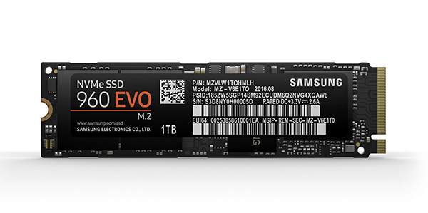 Il Samsung 960 EVO è la nuova versione dell'SSD di Samsung con memorie velocissime e prestazioni elevate. Leggermente più lento ed economico della versione PRO ed è adatto per chi usa il PC in modo professionale ma non usa programmi che richiedono velocità di trasferimento dati eccessivamente elevato.