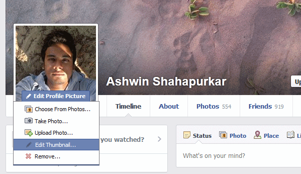 - Recatevi sul vostro profilo e passate il mouse sull'immagine del profilo, vedrete comparire la funzione per modificare l'immagine, voi scegliete di modificare la miniatura