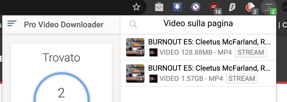 NOTA: questa icona si riferisce all'addon "Pro Video Downloader" per Chrome. L'icona potrebbe cambiare in base all'estensione che utilizzi, il procedimento invece resta uguale per tutte le estensioni.