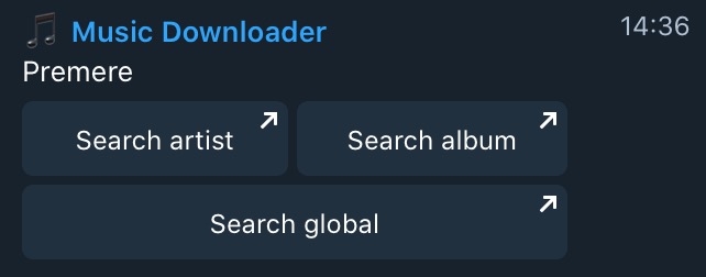 - il bot ti restituirà questa schermata, dalla quale dovrai scegliere se cercare in base all’artista, all’album o se fare una ricerca globale