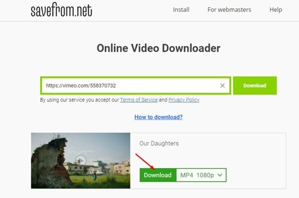Puoi utilizzare siti web di terze parti come Savefrom.net per scaricare i video da Vimeo. Giusto per info, segnalo che questo sito Web (come tanti altri simili e alternativi) può scaricare video da altri siti Web di condivisione video come YouTube, ma noi in questo caso lo useremo solo per Vimeo.