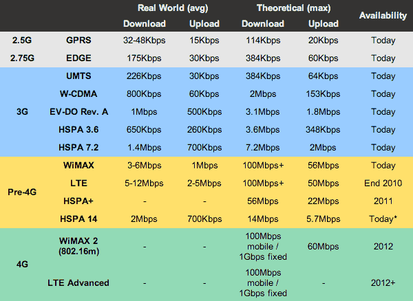 Per concludere, vi propongo questa interessante tabella in cui sono state messe a confronto tutte le tipologie di connessione dati in modo da chiarirvi la situazione nel migliore dei modi.
