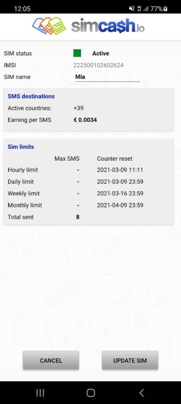 Come ho detto in precedenza, Simcash usa gli SMS del nostro piano tariffario per funzionare.