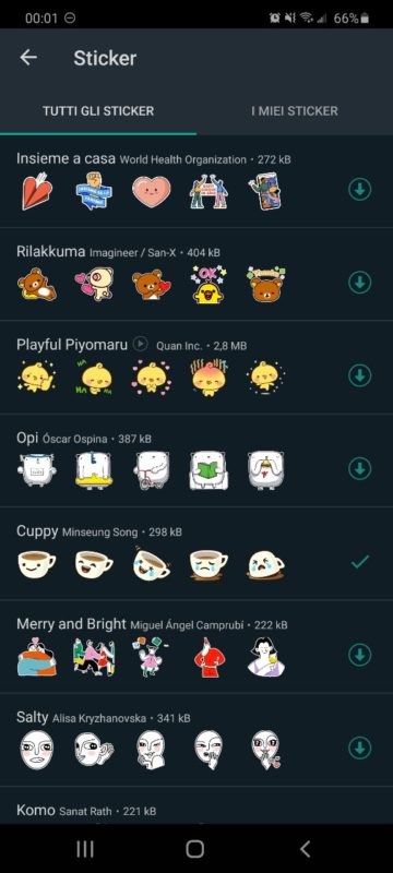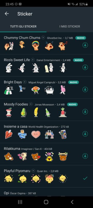 Al momento i pacchetti di sticker animati su WhatsApp sono:
