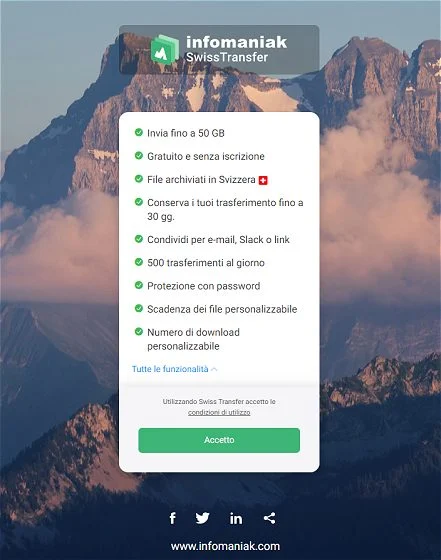 Ecco il link diretto per accedere al servizio: PROVA SWISSTRANSFER