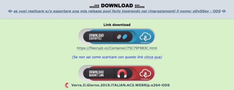 - scegliere se avviare il download da EasyBytez (abbastanza scomodo, soprattutto se non hai un account Premium a pagamento) o se scaricare tramite link Magnet (decisamente più veloce come soluzione)