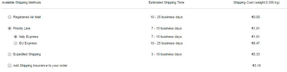 Purtroppo da fine Agosto il meccanismo della spedizione Italy Express, ma anche quelle dedicate ai singoli paesi, che avevano il vantaggio di avere tracciabilità sicura, velocità e sopratutto la sicurezza di non pagare le spese doganali, si è rotto e ad oggi non abbiamo notizie se e quando verrà ripristinata.