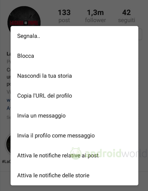 Devi seguire lo stesso procedimento appena indicato, ma dovrai semplicemente selezionare la voce "Disattiva notifiche" per smettere di ricevere notifiche ogni volta che quel determinato account condivide foto, post o Storie su Instagram.