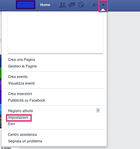 Cliccate sulla freccetta in alto a destra per accedere alle “Impostazioni”