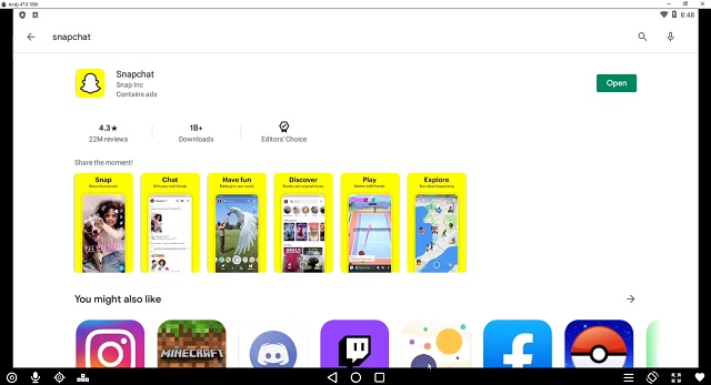 - Direttamente da Andy, apri il Play Store scarica Snapchat