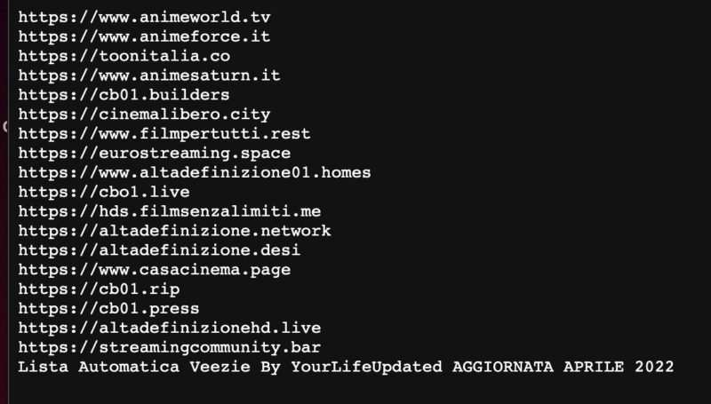Prima di abbandonare l'articolo, ti consiglio di consultare il nostro articolo dove trovi la lista automatica sempre aggiornata da inserire in Veezie. E' la migliore attualmente disponibile e SEMPRE AGGIORNATA: