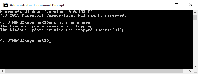 Nel Command Prompt, digitate questo comando e poi premete Invio per bloccare il Windows Update service.
