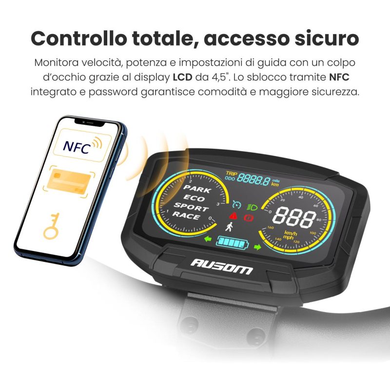 Su Ausom L1 trovi un bellissimo schermo a colori che ti permette di controllare in tempo reale di velocità/potenza/chilometraggio.