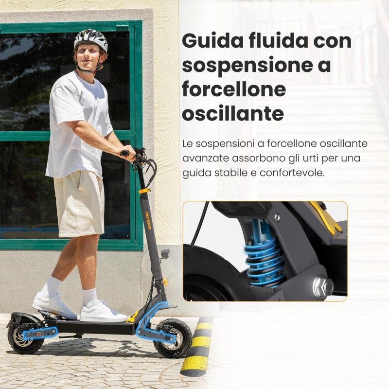 Per offrire una guida molto confortevole, Ausom L1 integra un sistema di assorbimento degli urti a molla idraulica a 3 livelli, che gli permette di filtrare il 90% delle asperità stradali.