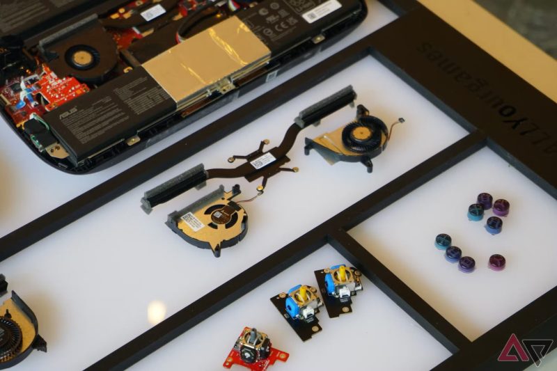 Due nuovi tunnel nell'alloggiamento della ventola dirigono l'aria verso l'alto e verso una terza presa d'aria di scarico sul bordo superiore del ROG Ally X.