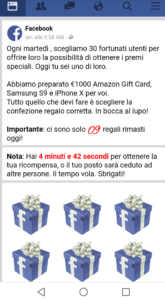 Attenzione alla truffa "€1000 Amazon Gif Card, Samsung S9 e iPhone X"