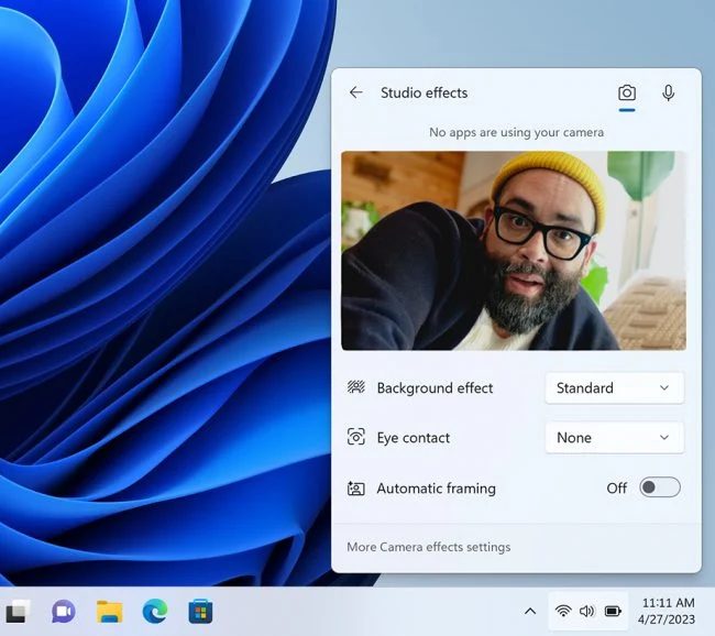 - Windows Studio Effects, la tecnologia che permette di applicare filtri di vario tipo (sfocatura dello sfondo, inquadratura automatica, focus voce, contatto visivo) alla webcam durante una videochiamata, è accessibile ancora più rapidamente dai Quick Settings