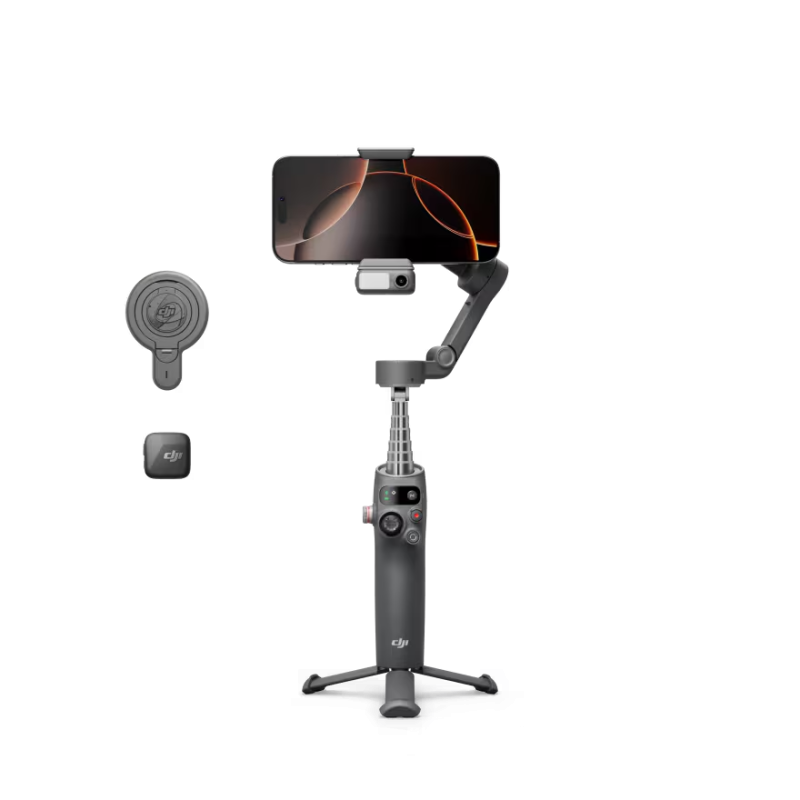 - Osmo Mobile 7P: Manico telescopico integrato con estensione fino a 215 mm, treppiede integrato e morsetto magnetico di quarta generazione per una maggiore compatibilità
