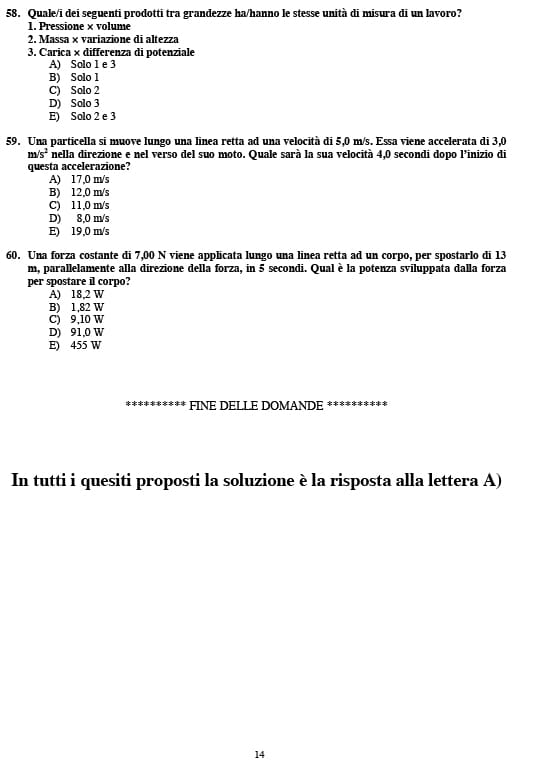 Ecco le domande e le risposte della prova unica di ammissione anche se è emerso il sospetto di presunta manomissione, il ministero conferma che non sarà annullata dopo il caso del plico mancante a Bari.