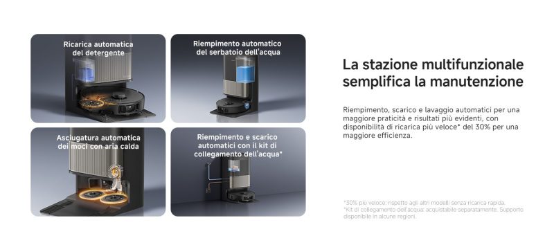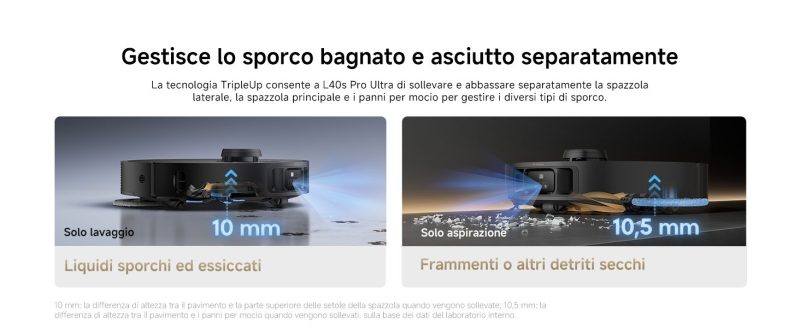 - Ricarica detergente e acqua pulita nel robot (come L40 Ultra)