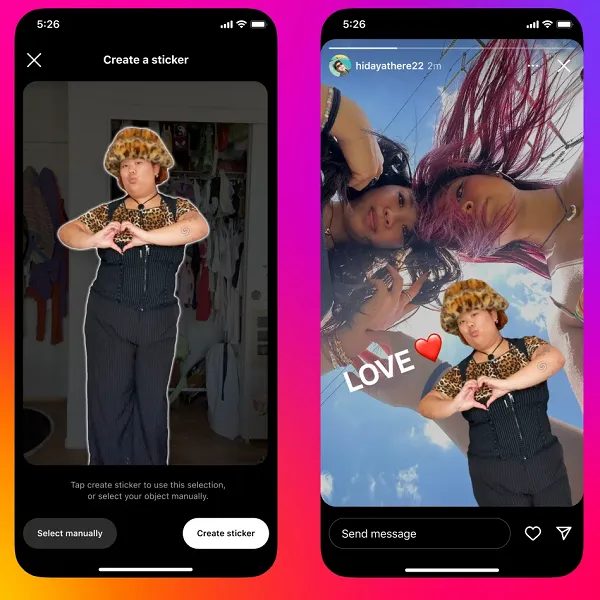 L'adesivo ''Ritagli'' consente ali utenti di trasformare parte di qualsiasi video o foto nel rullino in un adesivo personalizzato da aggiungere alle Storie o ad un Reel.