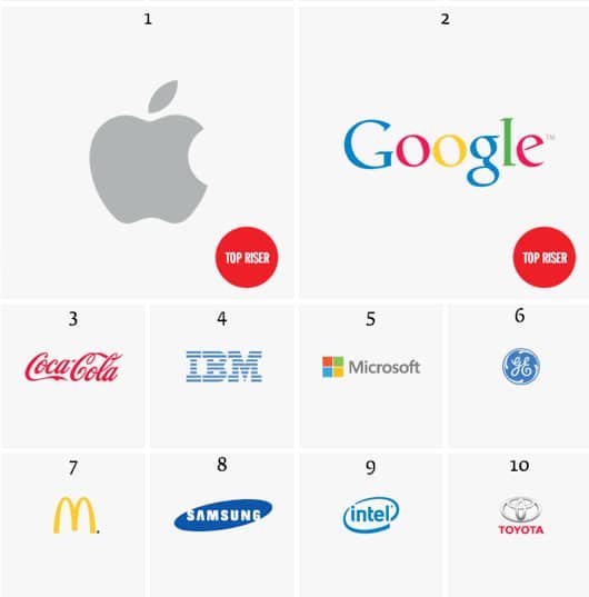 Apple e Google sono i brand che valgono di più al mondo, almeno secondo la nuova classifica dei brand pubblicata poche ore fa da Interbrand.