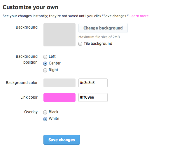 Twitter ha annunciato il nuovo look dell’interfaccia web tramite un semplice messaggio sul suo account Twitter e notifica l'introduzione di un nuovo layout e colori sono chiaramente ispirati alle applicazioni già presenti per iOS e Android, tuttavia non sono state apportate modifiche agli elementi principali usati per la navigazione con la possibilità di avere maggiore controllo sulle impostazioni di modifica del layout in modo da personalizzarlo secondo i propri gusti.