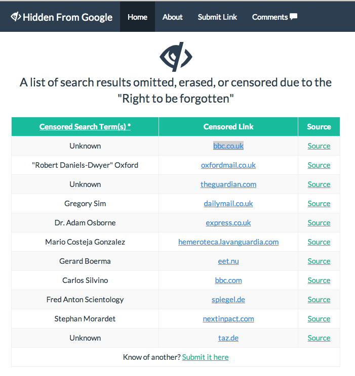 Ecco come fa a funzionare Hidden from Google, un servizio che cataloga i risultati censurati e permette di sapere che cosa non si vuole che gli utenti UE possano leggere, attirando quindi maggiore attenzione proprio su quello che si voleva nascondere.