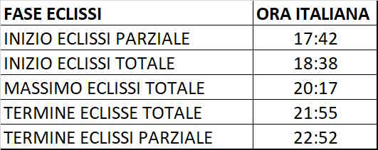 L’ombra oscura sarà sul continente dal Mazatlán (Messico) a Terranova (Canada), passando per gli Stati Uniti, per una durata complessiva di 1 ora e 43 minuti.