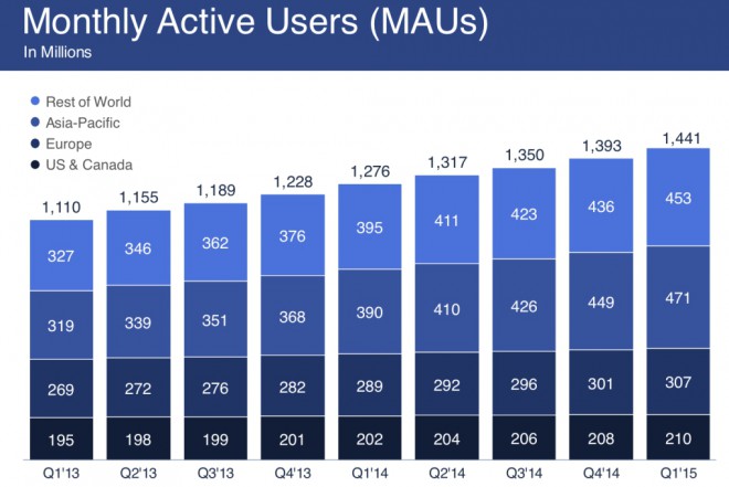 Facebook raggiunga la quota di 1.44 miliardi di iscritti.Facebook ha chiuso il primo trimestre del 2015 in positivo, così come ci si aspettava, ma non è riuscita a superare le stime degli analisti. Co...