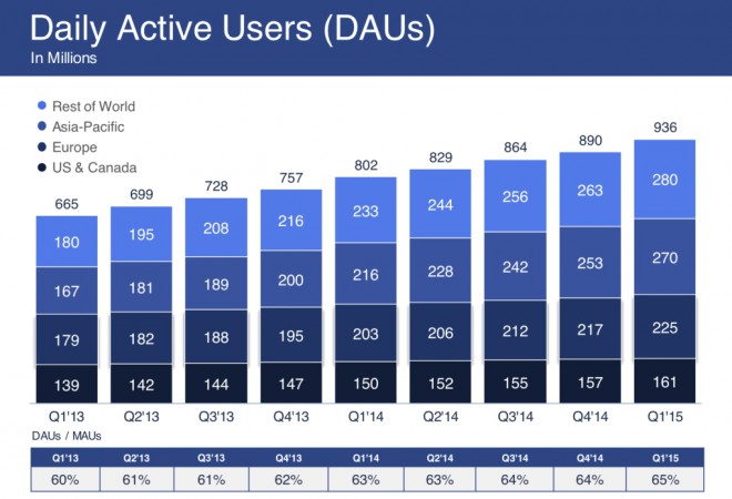 Facebook ha inoltre dichiarato che ogni mese gli utenti attivi toccano quota 1,44 miliardi, una cifra spaventosa corrispondente a circa un quinto della popolazione mondiale. Ogni giorno, invece, circa 936 milioni di persone risultano attive.