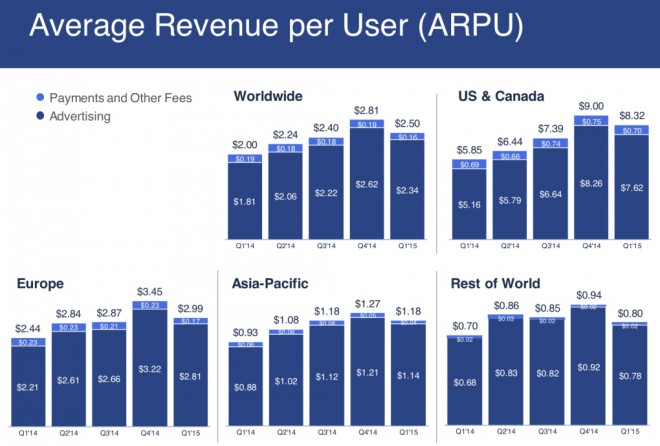 Per quanto riguarda i guadagni di Facebook su ogni singolo utente, curioso notare come nel resto del mondo, che conta circa 280 milioni di utenti attivi al giorno, ci sia stato un calo di entrate del 15,2%. Gli altri dati parlano chiaro, Facebook guadagna, e anche tanto, su ogni singolo utente attivo ogni giorno, senza contare inoltre che ci sono entrate derivanti da Instagram e Whatsapp.