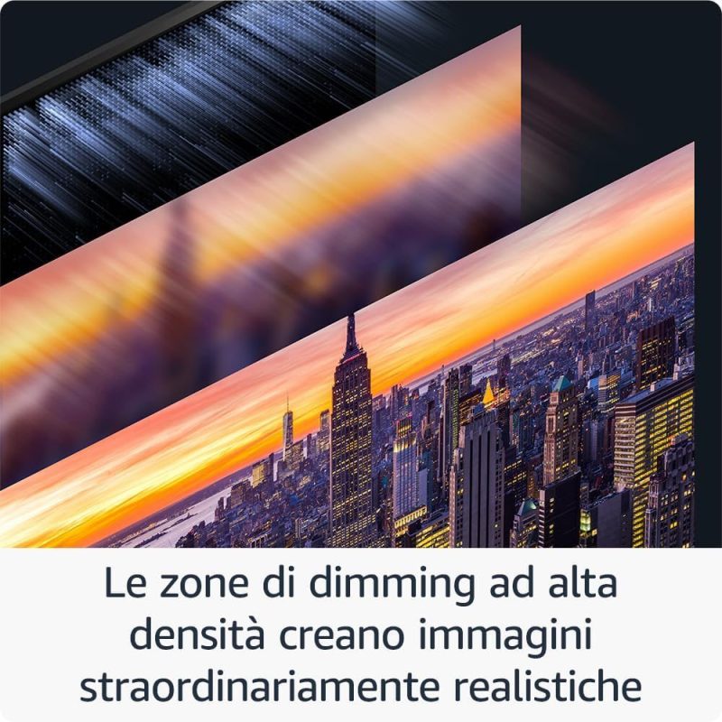 Il cuore della nuova Fire TV Omni Mini-LED è un pannello QLED Mini-LED 4K di altissima qualità, con fino a 1.400 nit di luminosità di picco e 768 zone di local dimming, per offrire neri profondi, colori vividi e contrasti dinamici.