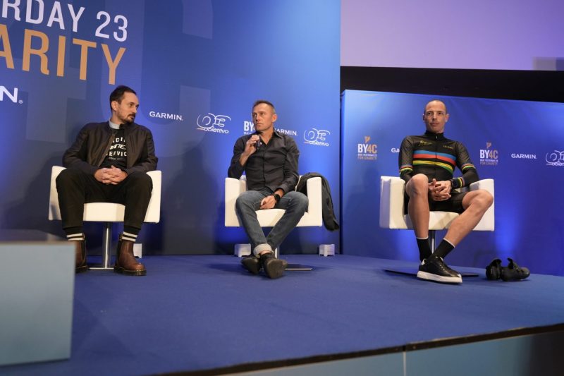 Durante la tre ore di Garmin, a fare da sottofondo eccezionale ai talk si è svolta la pedalata benefica per Obiettivo3, animata da Fabio D’Annunzio e Tania Branzanic.