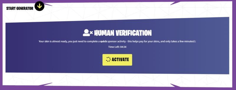 Proprio quando sembra fatta e sei pronto per ottenere skin e V-bucks gratis per Fortnite, ecco che tutti i generatori si bloccano e chiedono la verifica umana.