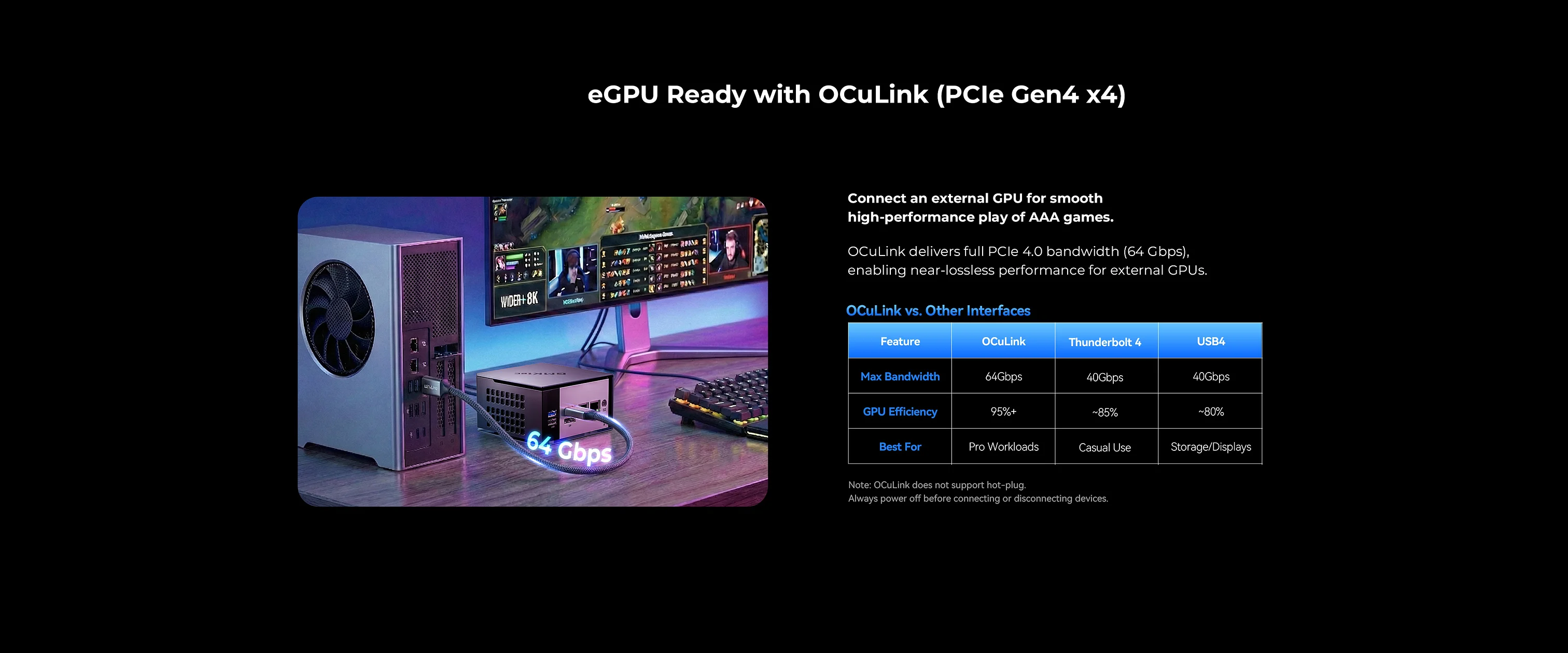 OCuLink + USB4 per eGPU con overhead ridotto