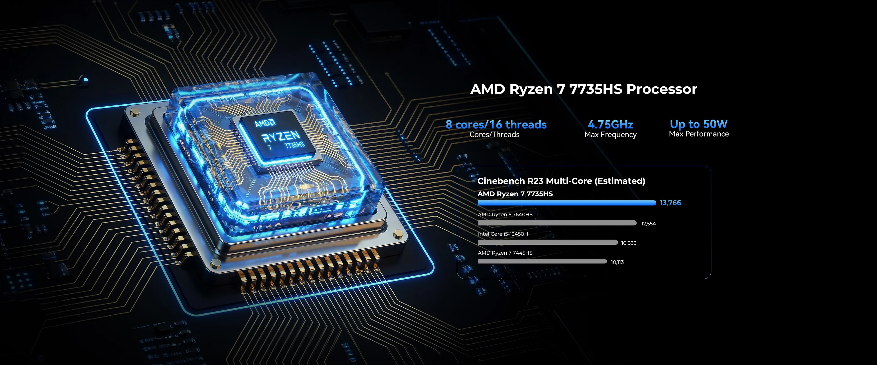 Il NucBox K16 monta un AMD Ryzen 7 7735HS a 6 nm con architettura Zen 3+: parliamo di 8 core e 16 thread capaci di gestire multitasking spinto, editing video e software professionali.