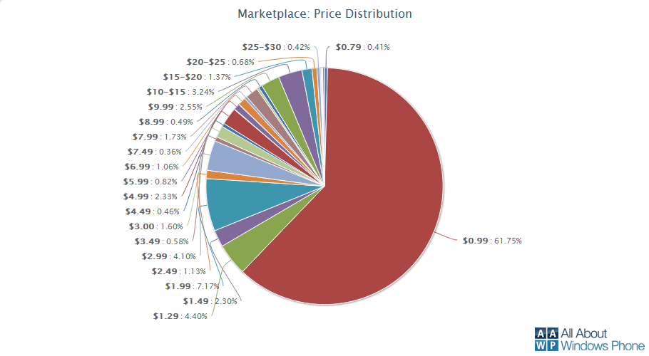 L'ultimo grafico invece, mostra come si divida le percentuale della sole applicazioni a pagamento, con un dominio sulle altre della fascia degli 0.99$.