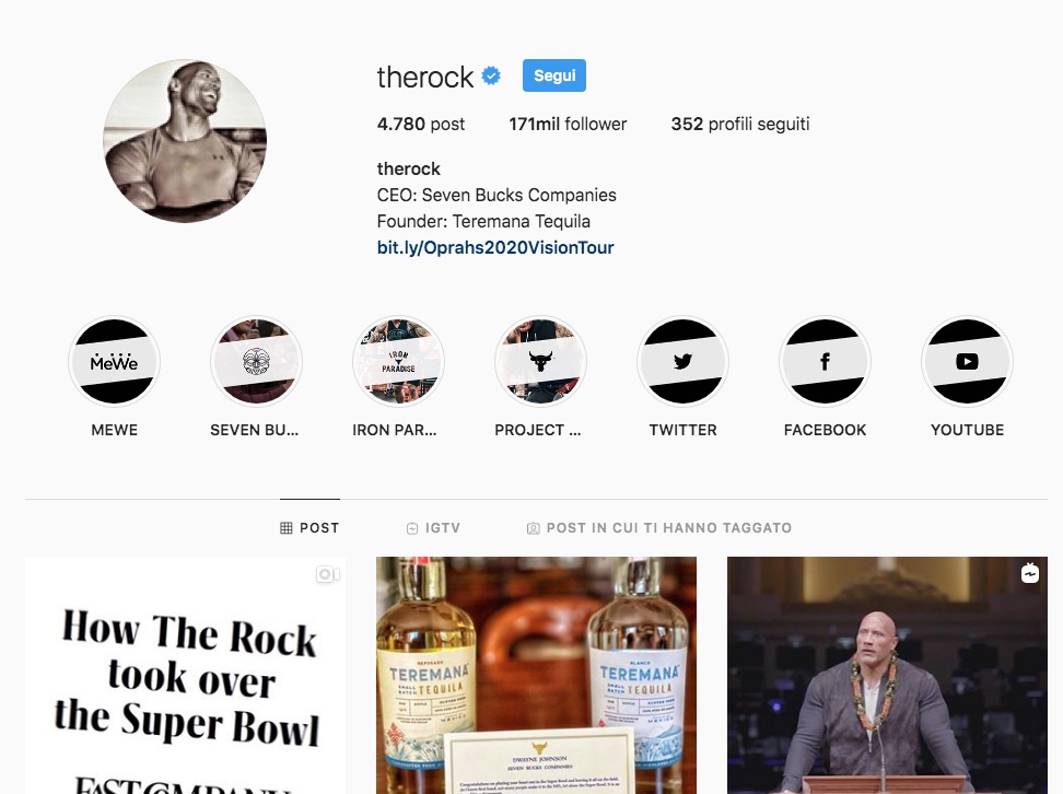Al terzo posto troviamo The Rock, un altro account molto seguito sul social network a livello mondiale.