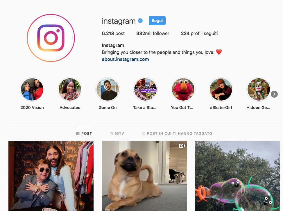 Al primo posto in classifica troviamo l'account ufficiale di Instagram.