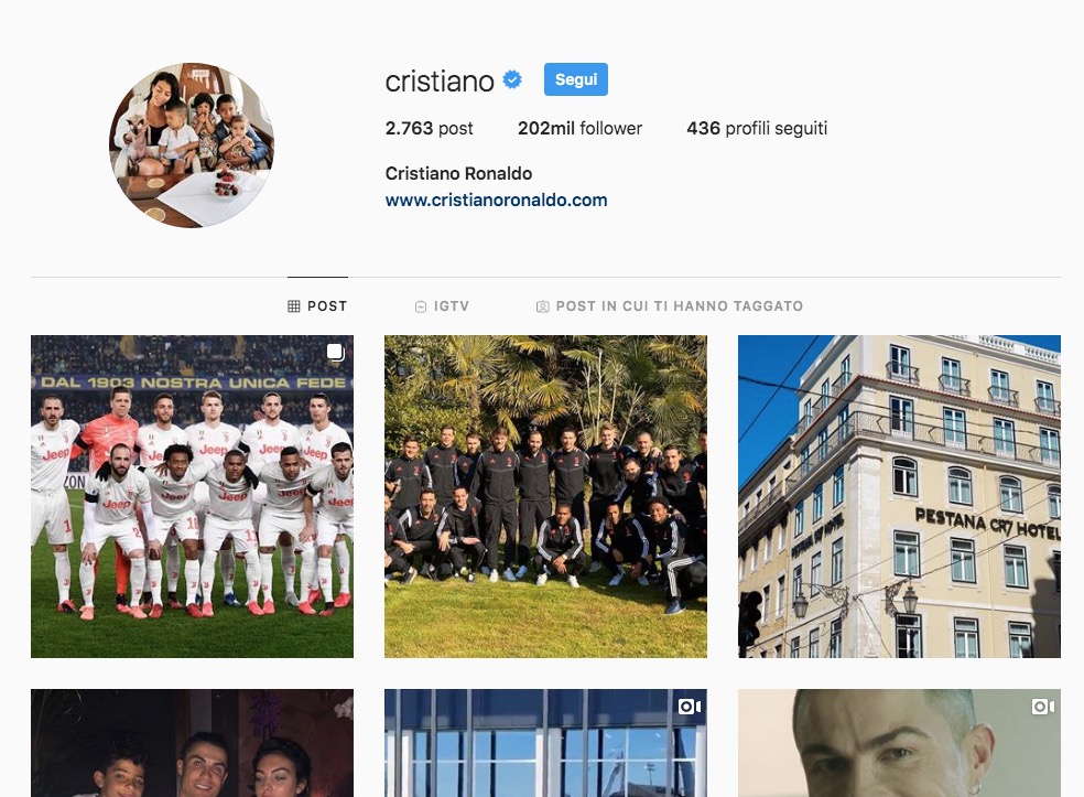Subito dopo, troviamo l'account di Cristiano Ronaldo, che probabilmente è anche la persona che guadagna di più su Instagram.