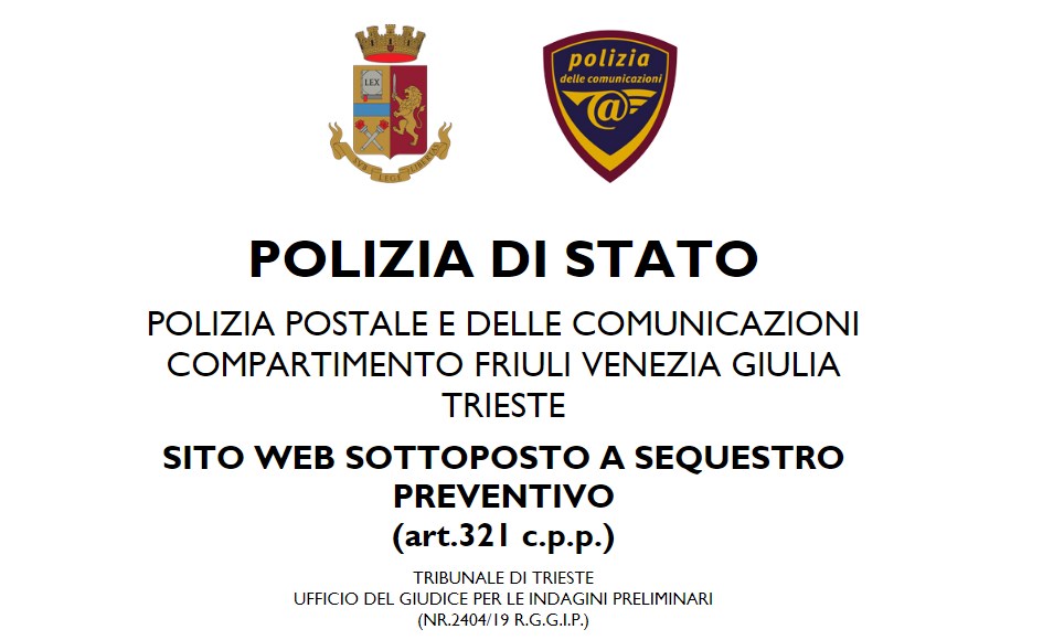 SITO WEB SOTTOPOSTO A SEQUESTRO PREVENTIVO
