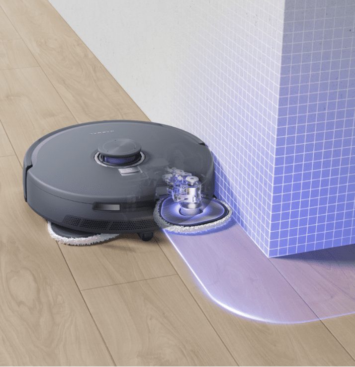 Il robot si adatta con precisione ai contorni: segue pareti e bordi con uno spazio nullo (0mm gap), utilizza una manovra di estensione e inversione per gli angoli interni, circumnaviga ostacoli e raggiunge spazi ristretti grazie al mop motorizzato indipendente dotato di tecnologia EdgeSwing e pressione mirata.