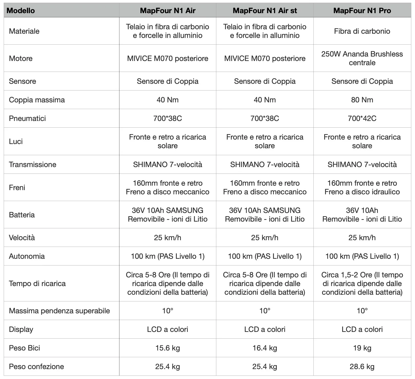 In questo modo puoi capire meglio analogie, differenze e cosa cambia tra le biciclette elettriche ENGWE Mapfour N1 Pro, N1 Air e N1 Air ST.