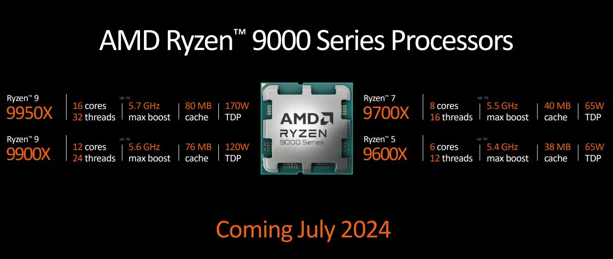 I nuovi AMD Ryzen 9000 arriveranno a luglio, ma per il momento non ci sono dettagli più precisi.