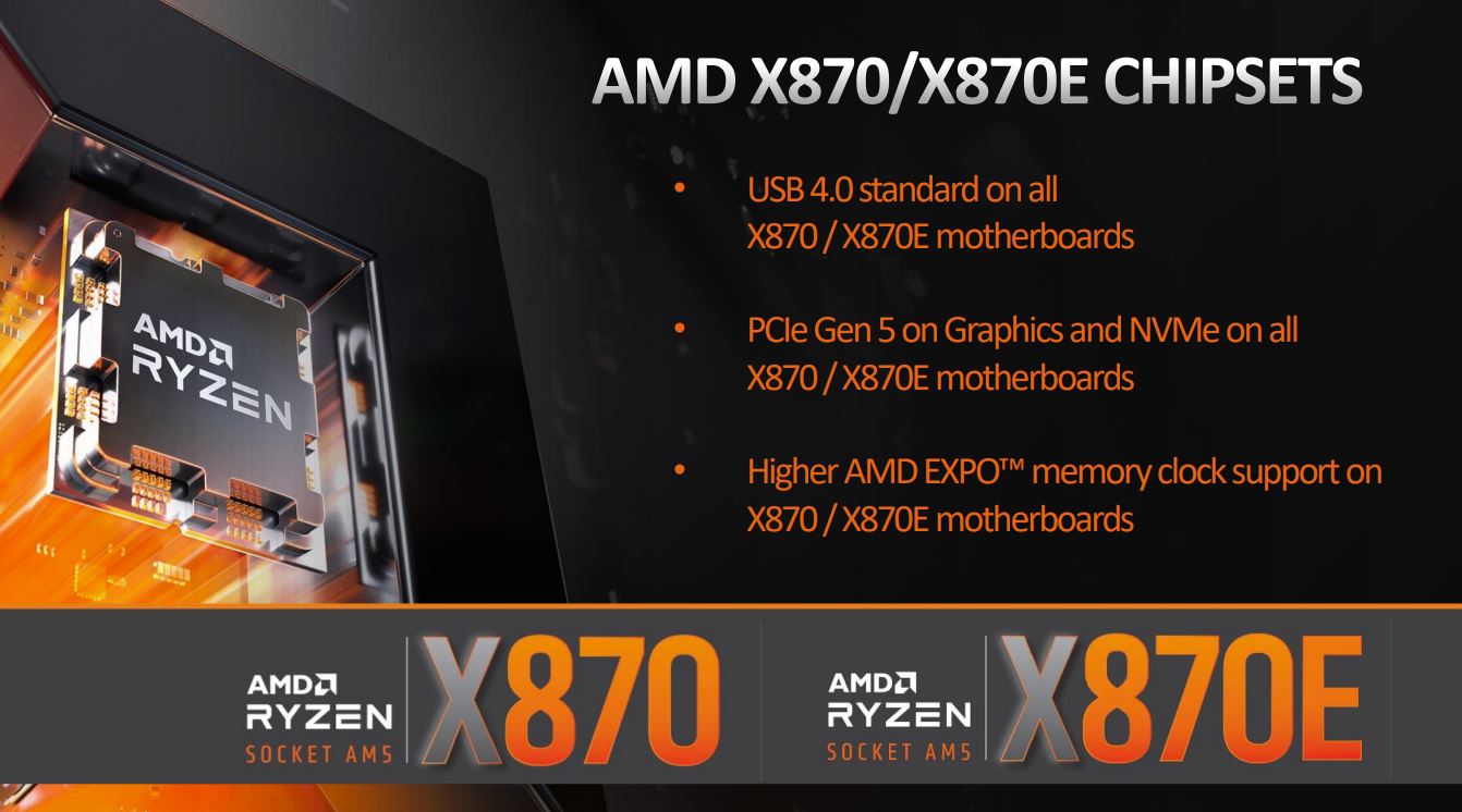 Sono stati annunciati anche due nuovi chipset AM5 per le schede madri, vale a dire AMD X870E e AMD X870.