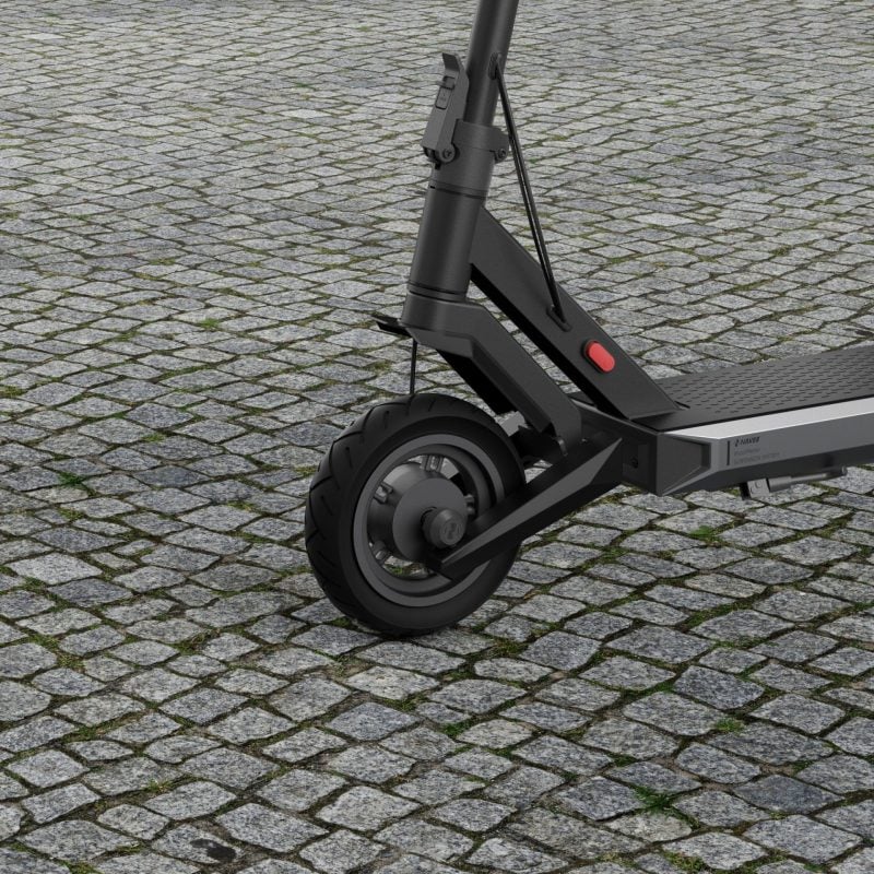 La tecnologia innovativa delle sospensioni anteriori e posteriori, unita all'impiego di materiali riciclabili, conferisce al monopattino un aspetto unico.