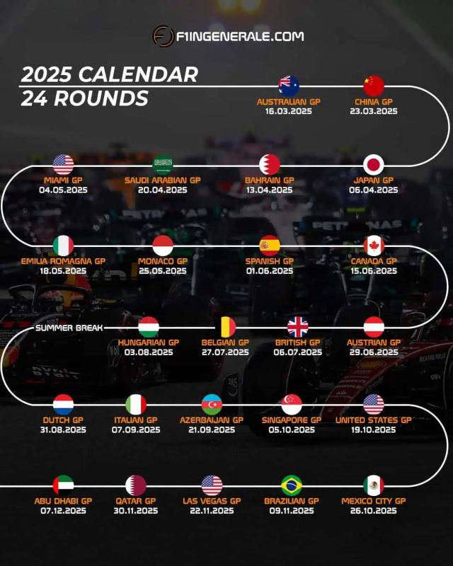 Nuovo Calendario Formula 1 2025: le date di tutti i 24 Gran Premi