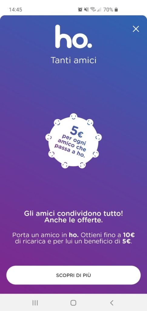 Dobbiamo aspettare che l'app ufficiale (e anche il sito) di Ho Mobile venga aggiornata dall'operatore. Solo a quel punto, all'interno dell'app per Android e iOS e in una nuova sezione del sito, arriverà la funzione che permette di generare link d'invito per il programma referral.